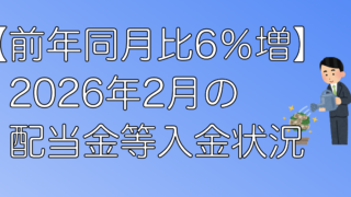 こんにちはアルです。今回は2026年2月の配当金等の入金状況について報告します。