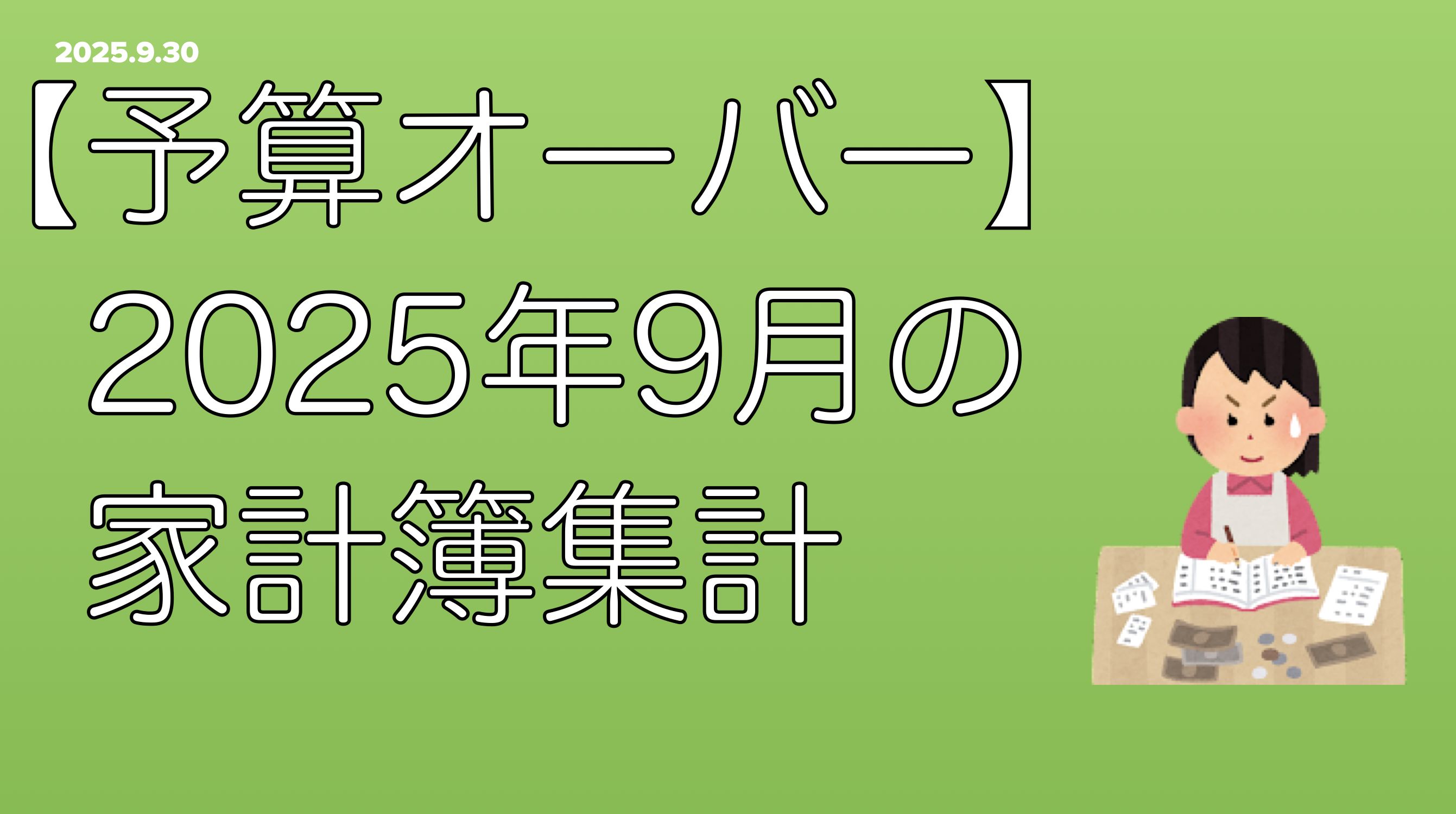 9月の家計簿(8月25日〜9月24日)を集計したので、その結果をまとめました。