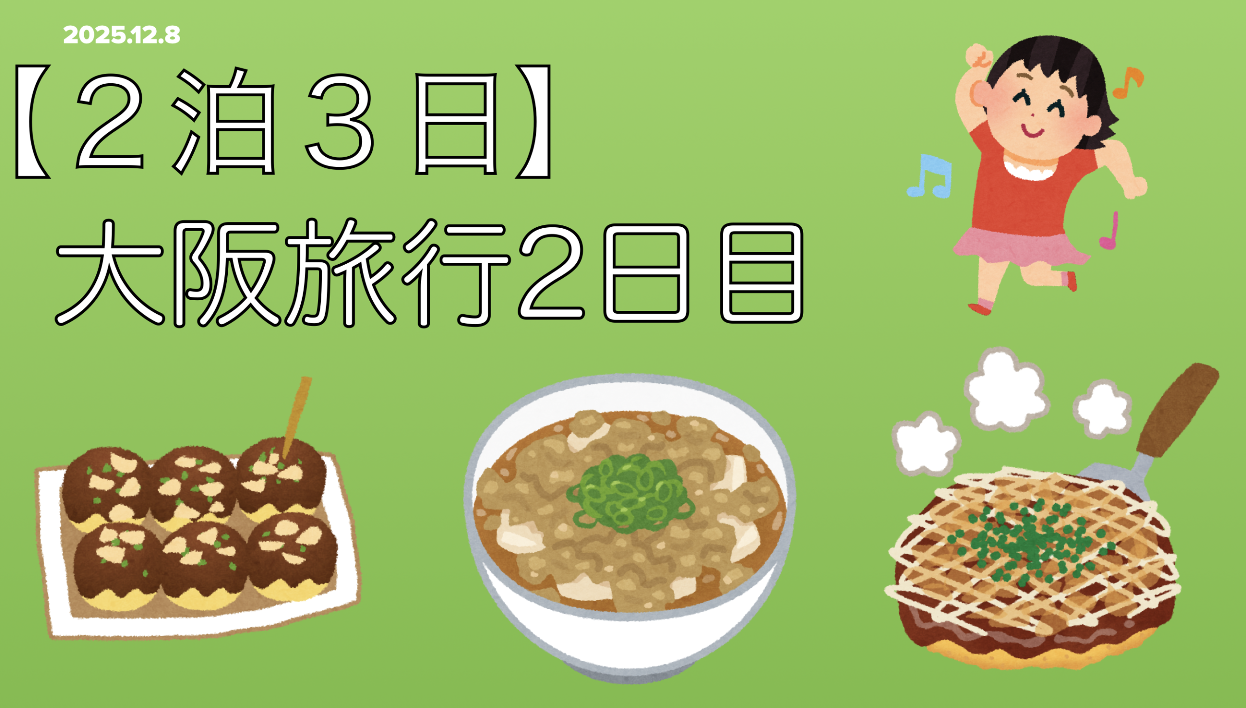 2泊3日の大阪旅行、2日目の支出と行程は以下のとおりです。
