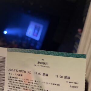 夕方、ケイは地下鉄四つ橋線でオリックス劇場へ。アルは部屋でドラクエ10をしてお留守番です。(2日目はケイのみ参加するため、ライブのチケット代はケイのお小遣いから支払い、支出一覧には含みません。)