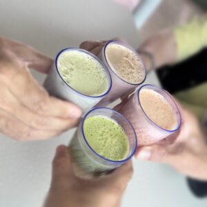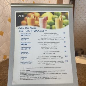 食後は船内散策。プールサイドで太極拳をやっていたので参加した後、プールサイドのドリンクバーで生搾りドリンクを飲み比べ。