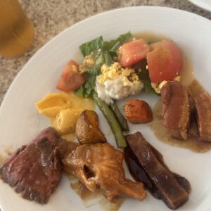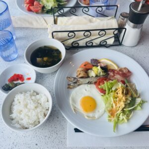 7:00過ぎ、ビュッフェ形式レストラン14階〝ホライゾンコート〟で朝食。ご飯と味噌汁に合いそうな料理を選び完食。
