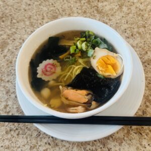 40分程かけて見学した後、再びタクシーを呼んでクルーズ船に戻り、13:30過ぎに朝食と同じレストランへ。朝は無かったラーメンコーナーがあり、この日は塩ラーメン。自分で好きな具材を選んでトッピングし、具沢山塩ラーメンの完成。追加でビールに合いそうな料理もいただきました。