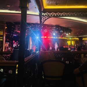 20:15からは7階〝エクスプローラーズラウンジ〟でサックスメインのバンド演奏を鑑賞。カンパリソーダやハイボール等を飲みながらジャズやJポップの生演奏を楽しみました。