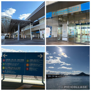 一般道を走り広島港宇品旅客ターミナルに到着。平日だったこともあり人は少なかったですが、通学や通勤にも使われるためか飲食店が思ったより充実していました。