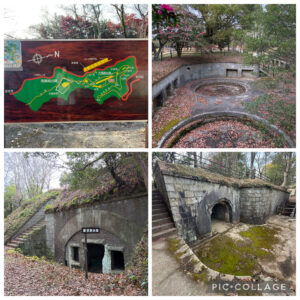 昨日通行止めで行けなかった〝三高山砲台跡〟について観光協会へ問い合わせたところ、別のルートを教えてもらい、無事に〝三高山砲台跡〟の駐車場に到着。砲台跡や弾薬庫、兵舎などが見学しやすいよう見学路が整備されていて、思った以上に見応えがありました。