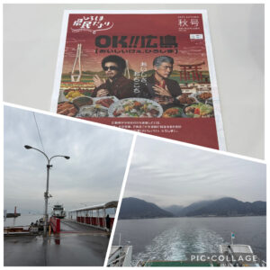 車内で朝食を済ませ、『てくてくのさつまいも本舗』と特産品販売所『えたじまーれ』に寄ってお土産を購入した後、三高港へ。フェリー乗り場に隣接する『みたかゲートハウス』内の待合室には地元産野菜の無人販売コーナーもあり、なにげなくチラシや観光案内等が並べてあるラックに目をやると〝ひろしま県民だより秋号〟を発見!有り難くいただきました。