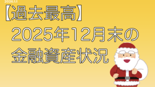 アル 【過去最高】2025年12月末の金融資産状況 あけましておめでとうございますアルです。2025年12月末の金融資産状況についてまとめました。前回金融資産を確認したのが2025年11月末だったので、1ヶ月経過したことになります。 2025年11月末の金融資産はこちら ... 2026.01.01 アル資産運用