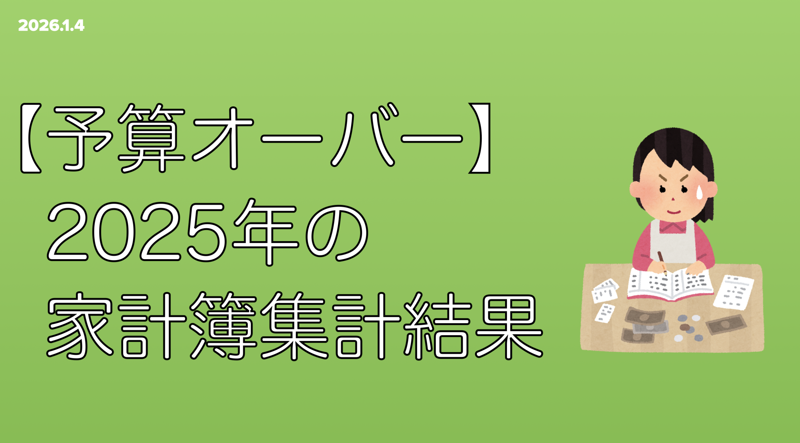 2025年1月〜12月の家計簿を集計したので、その結果を記録します。これを基に2026年の予算を検討します。
