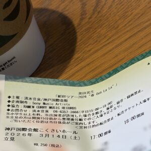 ケイの大好きなミュージシャンの体調不良により延期されていたツアーが先日無事再開。急遽発売された立見チケットを購入し、神戸まで日帰り一人旅に行ってきました。