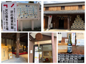 次は灘区にある『沢の鶴資料館』へ徒歩と電車で移動。12:00過ぎに到着し、酒造りの工程や歴史に関する展示を見学した後、ミュージアムショップで純米生原酒の無料試飲をいただきました。この日は偶然年に一度の蔵開きイベント開催日だったので、アルへのお土産に蔵開き限定酒のミニボトルを購入しました。