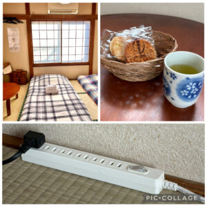 そこから10分程歩いて今回2連泊する『わびさびホステル』へ。無人チェックインなので、玄関前のボックスに設置されたタブレットへパスワードを入力したり、自分の動画を撮ったり、失敗しつつも何度かトライし、15:00過ぎ無事入室。