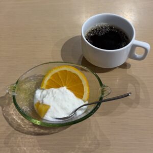 食後にフルーツとヨーグルト、ホットコーヒーもいただきました。ドリンクはお部屋に持っていくことも可能です。