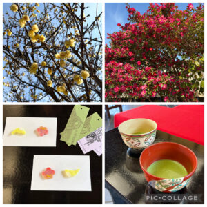 お散歩日和でお花見もできました。お茶菓子は春らしウグイスと梅。