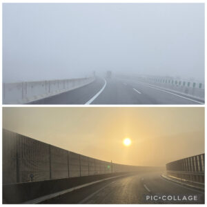 途中、雲海の下に入ると視界が悪くなりましたが、通り抜けると再び朝日が見えてきました。