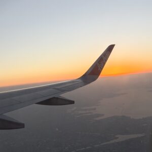 16:00過ぎ搭乗口前に移動し、定刻より30分程遅れて17:30頃離陸。