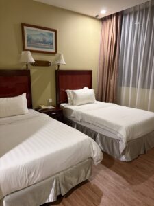 ガイドさんと一緒にチェックイン手続きを済ませ、部屋に入れたのは深夜1時前。疲れていたため着替えと歯磨きだけしてすぐに就寝。長い長い1日がやっと終わりました。