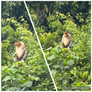 16:30頃、ライフジャケットを着てボートに乗り込みリバーサファリに出発。素人では絶対に見つけられない森の中の野生動物達(テングザル、カニクイザル、ミズオオトカゲ、サイチョウ等)を専門スタッフが見つけて教えてくれます。思った以上に数多く見ることが出来ましたが、高い木の上方ばかり眺めていたので最後の方は首が疲れました。