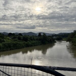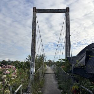 8:00頃、途中の川にかかる吊り橋を見学。天気が良ければ世界自然遺産のキナバル山が見えるそうですが、残念ながら雲に隠れて全く見えず。