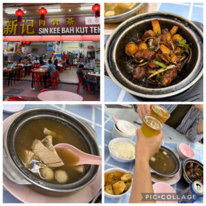夕食はガイドブックに載っていた『新記骨肉茶(シンキーバクテー)』へ。バクテー(骨肉茶)とドライバクテー、ライスと揚げパン、ビールをオーダー。ビールはシンガポールのタイガービールでした。バクテーは漢方風味のスープが美味しく、具材のホルモンも柔らか。ドライバクテーの豚肉も柔らかく甘辛い味付けで白いご飯とよく合います。