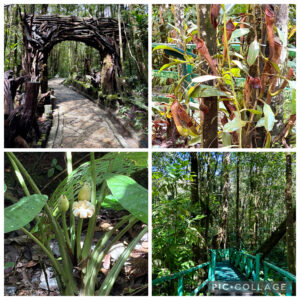 出発から2時間半後の9:50頃、キナバル公園に到着。標高約1,500mに位置し、キナバル山と共に世界自然遺産に登録されています。ガイドさんの説明を聴きながら珍しい花や食虫植物等を観察。1時間程散策した後、車に戻りポーリン温泉へ移動。