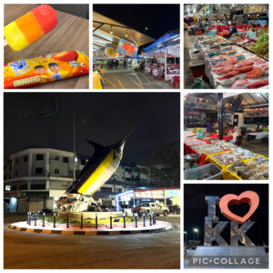 帰り道、セブンイレブンで箱入りココナッツクッキーとアイスを購入。外のテーブル席でアイスを食べ、海沿いにあるシーフードナイトマーケットを通って、再びスーパーマーケット『バタラス』へ。残った現金でお土産や自宅用のお菓子等を追加購入しました。