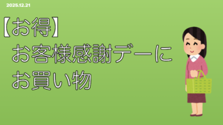 ケイ 【お得】お客様感謝デーにお買い物 こんにちは、ケイです。 昨日、ウエル活でお得に買い物してきました。ウエル活とは、ウエルシア系列のドラッグストアで毎月20日のお客様感謝デーにWAON POINTを200ポイント以上使って、1.5倍分のお買い物をすることをいいます。そのた... 2025.12.21 ケイポイ活家事家計管理日々の出来事